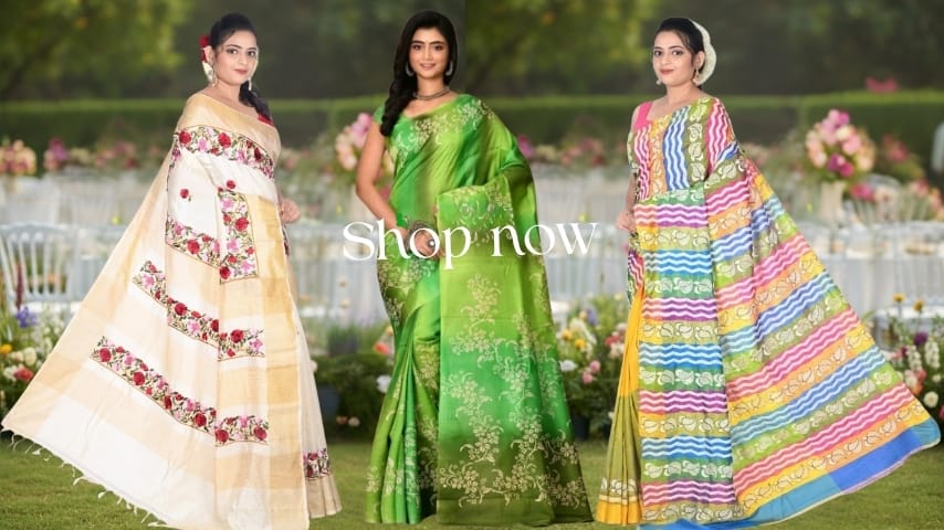 Embroidery Work on Pure Ganchi Tussar Silk Saree