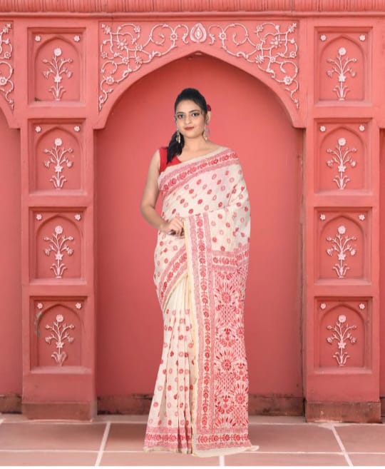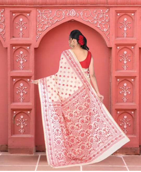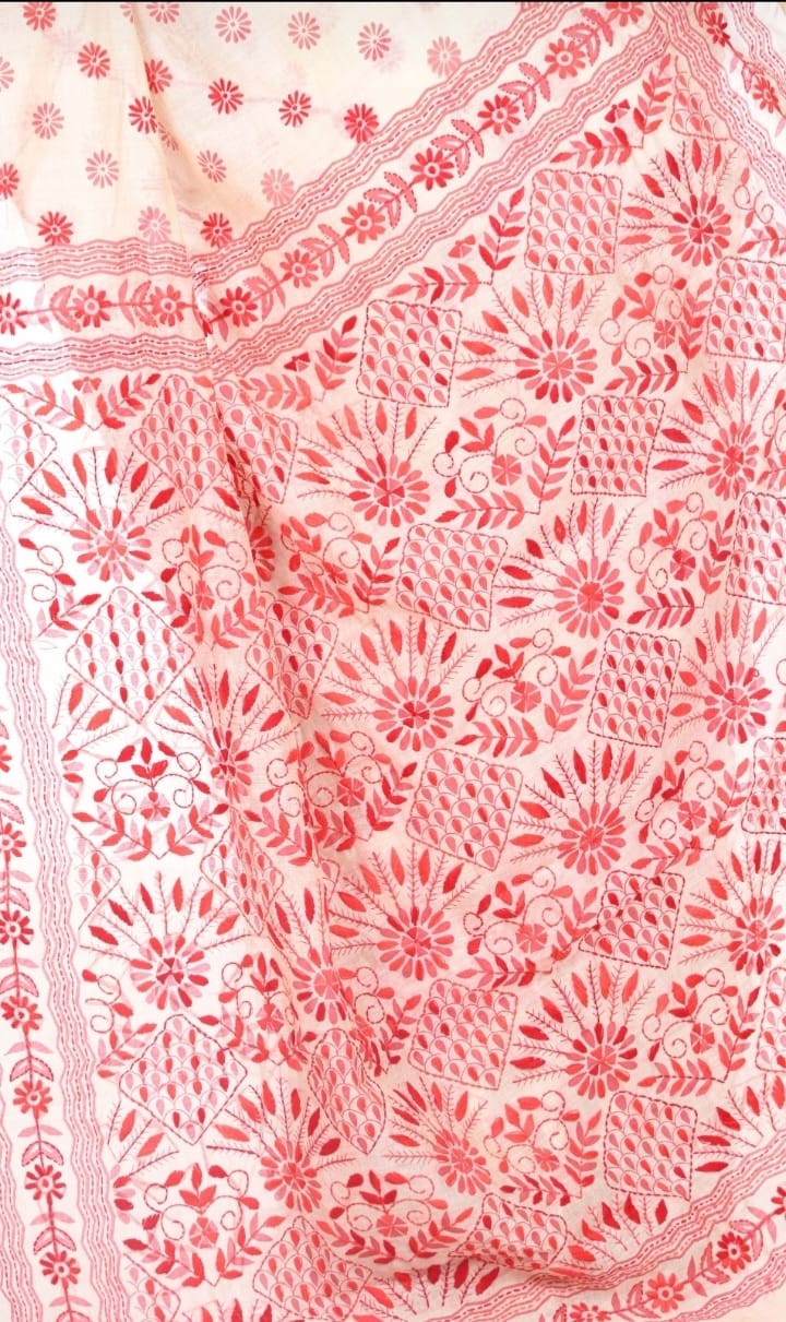 Hand Kantha Embroidery Work on off white Chanderi Cotton Silk