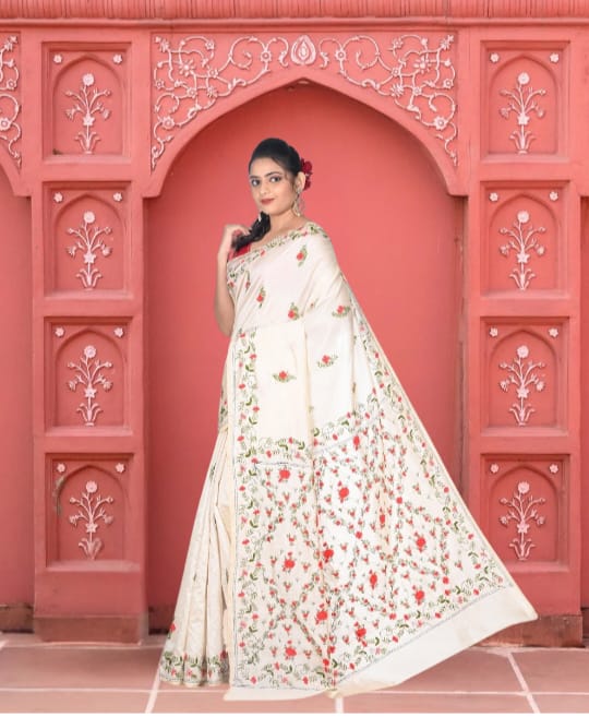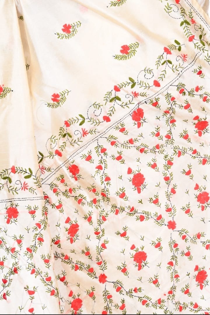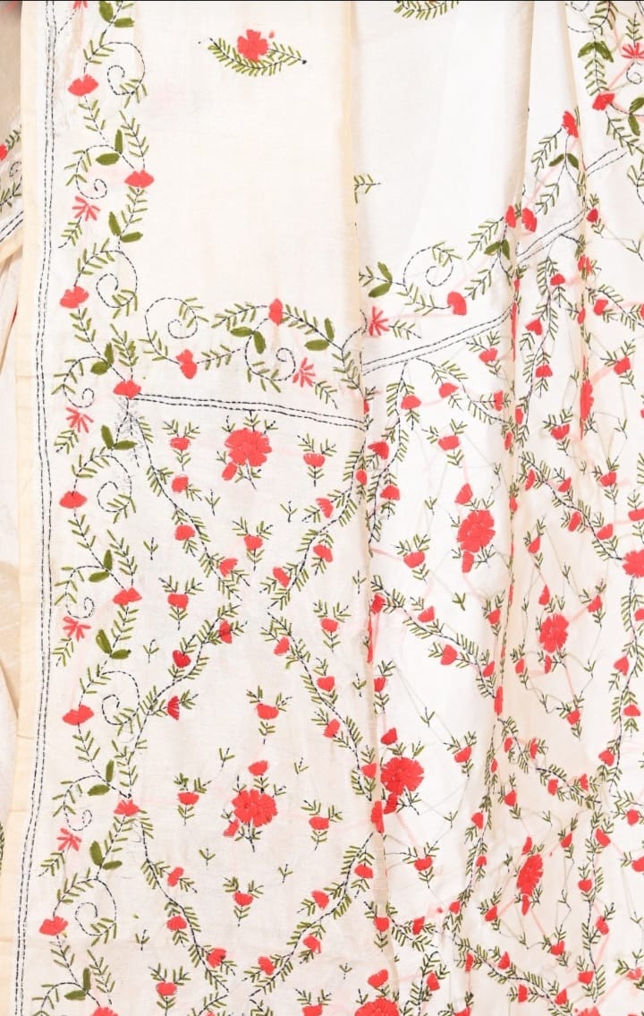 Hand Katha Embroidery Work on Bapta Tussar Silk