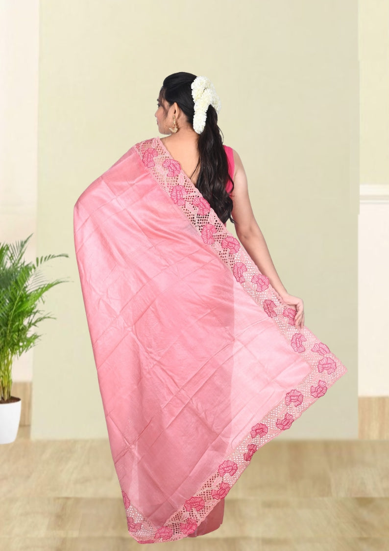 Peach Colour Ganchi Tussar Silk Saree with Hand Cutwork Embroidery Design