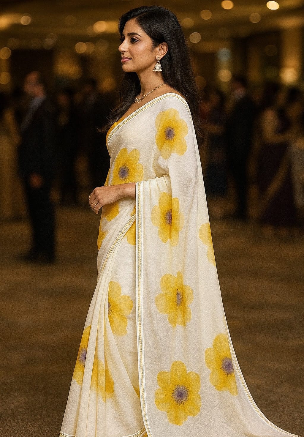 Elevate your ethnic wardrobe with this exquisite hand block printed linen saree, featuring a striking white and yellow palette. Crafted from breathable linen fabric, this saree offers comfort for all-day wear while maintaining its structured drape. The intricate hand block printing showcases traditional artisanal craftsmanship, with each piece bearing unique variations that celebrate its handmade nature. Perfect for festive occasions, cultural celebrations, or refined everyday styling, this saree seamlessly blends heritage aesthetics with contemporary sensibility. The natural linen composition ensures durability and develops a beautiful patina with wear, making it a timeless addition to your collection.